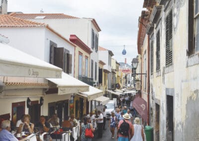 Dafür muss man aber nicht zwingend Seilbahn fahren. Bereits am Flughafen und wahrscheinlich schon bei der Reisebuchung wird man daran erinnert, dass Madeira durchaus ein Pauschalreiseziel ist. Im großen Weinhotel sind die mehrsprachigen Infos erst auf Deutsch und zuletzt auf Portugiesisch, und viele Hotels schmücken sich an den Eingängen mit großen Veranstalter-Logos. Wer es exklusiver haben möchte, muss sich nach kleinen Hotels oder nach den edlen mondänen Herbergen umsehen bzw. bei kleinen Reisespezialisten anfragen. Neben dem legendären „Reeds“ am Rande von Funchal gibt es weitere Traditionshäuser, von Quintas und Casas bis hin zu parkumsäumten Bauten im Kolonialstil.