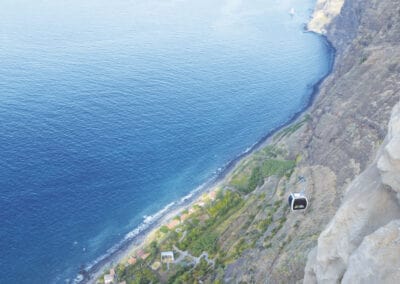 Die schwierigen Anbau-Bedingungen kann man überall an den Hängen der Insel erahnen oder bei Levada-Wanderungen nachempfinden. Beeindruckend sind aber auch einige andere winzige Enklaven des Obst- und Weinanbaus, die bis vor kurzem nur durch recht primitive, abenteuerliche Seillift-Fahrten zugänglich waren. Inzwischen sind die strandnahen Plantagen weit unterhalb der Klippen mit modernen Seilbahnen für Touristen zugänglich, die auch den Ansässigen Leben und Arbeit erleichtern. So gelangen die Reben, Bananen und anderen Früchte zum Beispiel von der Fajo dos Padres an der Südküste zu Märkten und Madeira-Weinfirmen. Einheimische und Reisende kommen zum Baden, Sonnen oder Speisen im kleinen Restaurant, und auch ein paar Gästezimmer in kleinen, schönen Ferienhäusern gibt es.