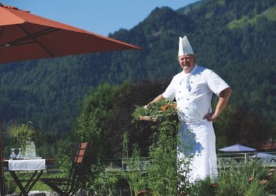 Bei den Mahlzeiten – umfangreiches Frühstück, leichtes Vitalbuffet am Mittag, hausgemachter Nachmittags-Kuchen und 5‑Gang-Wahlmenü am Abend – wird erkennbar, wie individuell die persönlichen Bedürfnisse berücksichtigt werden. Seien es Fructose‑, Lactose- oder Glutenunverträglichkeiten oder der Wunsch, ein Detox- oder Low-Carb-Programm durchziehen zu wollen – alles wird vom Küchenchef sorgfältig bei den Menüs berücksichtigt und zusammengestellt. Dann ist es jedoch schade, bei dem „Bayerischen Themenabend“ mit den leckersten Schmankerln der Region Verzicht zu leisten (oder einfach mal über die Stränge schlagen?).