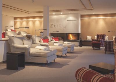 Und das alles in einer alpinen Wohlfühldestination, einem Resort inmitten einer Bilderbuchlandschaft. 117 Zimmer und Suiten in verschiedenen Kategorien bietet das Hotel. Empfehlenswert sind die Unterkünfte im neueren Trakt mit Balkon und Traumblick auf Wiesen, Weiden und das beeindruckende Bergpanorama. Die Ausstattung mit kostenfreiem WLAN (Verbindung jedoch etwas schleppend), Kühlschrank, Safe, großem TV-Screen etc. lässt kaum Wünsche offen. In diesem Gebäude befindet sich auch das Ladies-Spa, mit einem sehr ansprechenden behaglichen Ambiente mit offenem Kamin und Außenbereich mit tollem Ausblick. Hier sind Entspannung und Abschalten (keine Handy- und Internetverbindung) garantiert. Zusätzlich bietet der allgemeine 2600 m2 große Spa-Bereich im altrömischen Ambiente mit 18-Meter-Pool, finnischer Sauna, Dampfbad, Aromagrotte, Tepidarium ‚Solebad und Erlebnisduschen ebenfalls diverse Ruhezonen innen- und in der Natur zum Relaxen.