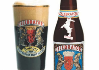 Ayinger Celebrator 6,7 % Vol. | Stammwürze 18,5 ° Bierfarbe: Mahagoni-Farbe/Rubinrot 0,33 l / 1,99 Euro Der feste Schaum ist umgeben von nussig-karamelligem Duft und einem Hauch von Zedernholz. Ein samtweicher, voller Körper wird begleitet von würzigen Geschmacksnoten im Abklang. Dessertbier. www.ayinger.de