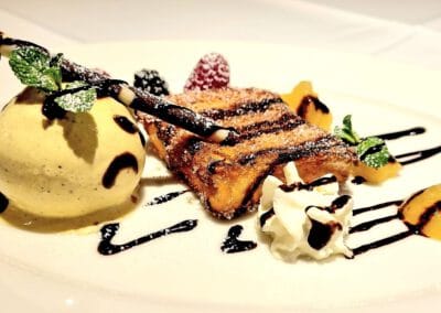 „Armer Ritter“: Gebackener Brioche mit Zimt und Zucker und crèmigem Vanilleeis