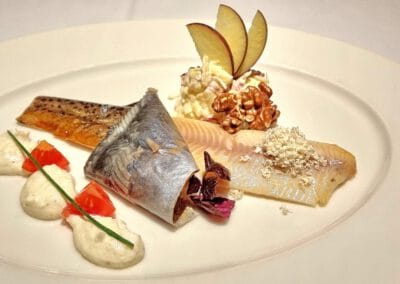 Geräucherte Lenneforelle an Sahnemeerrettich und Apfel-Selleriesalat