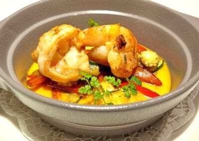 Seit Anfang des Jahres weht frischer Wind durch das Schmallenberger Traditionshaus gleich vis à vis der St. Alexander-Kirche. Denn mit Marie Christin und Alexander Hermes steht ein ganz junges Gastgeberpaar an der Spitze des annähernd 40 Mitarbeiterinnen und Mitarbeiter umfassenden Hotelteams. Die 26-jährige Marie Christin und ihr zwei Jahre älterer Ehemann Alexander waren bis November 2021 im legendären Hotel Bareiss in Baiersbronn beschäftigt. Sie als stellvertretende Bar-Chefin, er zuletzt als Oberkellner und zuvor verantwortlich für alles Operative rund um den zum Luxushotel gehörenden Morlokhof. Jung, dynamisch, sehr herzlich und voller Tatendrang agierend erlebten wir die beiden Gastgeber. Und omnipräsent zudem, denn beide sind nah am Gast und sichtbar beseelt von der vielseitigen Aufgabe passionierte Gastgeber im „Störmann“ zu sein. Zu- und anpackend, das passt trefflich auch auf Küchenchef Alexander Greve zu, einem echten Sauerländer mit dem Herzen am rechten Fleck. In Heiminghausen, einem Ortsteil von Schmallenberg in ländlicher Prägung aufgewachsen, absolvierte der heute 46-Jährige seine Kochlehre im „Romantik- und Wellnesshotel Deimann“, arbeitete zwischenzeitlich fünf Jahre im „Hotel Störmann“, ehe weitere Stationen, darunter hochdekorierte wie das Luxushotel „Excelsior Ernst“ in Köln, das besternte „Landhaus Stricker“ auf Sylt, das seinerzeit ebenfalls mit dem Macaron bedachte „Carême“ im Schlosshotel Weyberhöfe“ in der Nähe von Aschaffenburg folgten. Seit dem Jahr 2009 bekleidete Greve den Küchenchefposten im „Romantik- und Wellnesshotel Deimann“ bis zu seinem Wechsel in das Schwesterhotel „Störmann“ im Jahr 2017. Mit seiner grundehrlichen Jahreszeitenküche, die bevorzugt aus dem Repertoire regionaler Produkte schöpft und souverän die Geschmäcker von herzhaft bis fein, von klassisch sauerländischer Provenienz bis hin zu weltläufiger Kulinarik bedient, gilt der sympathische Mitvierziger zurecht als die lukullische Instanz im genussaffinen Traditionshaus. Was der zweifache Familienvater und sein Team über den Pass schicken, ist handwerklich von tadelloser Machart und immer ein nachhaltiger Genuss. Erfreulich zudem, dass Greve sich aus dem Portfolio lokaler Netzwerkpartner bedient. Die fangfrischen Lenneforellen stammen etwa aus der Fischräucherei Drenk in Schmallenberg, die Eier von Landwirt Kleinbirkenheuer, schussfrisches Wild liefern heimische Jäger und die Frühstückswurst wird von der nahen Metzgerei Merte bezogen. Ein Ganzjahresklassiker ist das „Rehragout“, erzählt uns Greve. „Das wird 365 Tage im Jahr nachgefragt. Wir können ganz klar auch die große Welt, aber unser kulinarisches Herz liegt eindeutig in der Region“, so Greve im Gespräch mit unserem Magazin. Zum sehr erfreulichen Gesamtgenusserlebnis trägt maßgeblich auch der herzlich agierende Service unter Leitung von Gaby Neddemeyer bei. Die Weinkarte listet namhafte Weingüter in ausreichender Zahl, zumal das frisch gezapfte heimische Bier in der Gunst der Gäste ganz oben rangiert. Für uns kochte Alexander Greve in den bestens frequentierten Stuben ein sechsgängiges Menü aus Heimat & Welt. In der Summe des Gebotenen ein delikater Querschnitt aus verfeinerter Bodenständigkeit.
