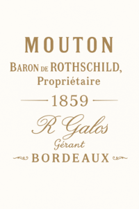 1953 zeigt zur Hundertjahrfeier ein Bild von Gründervater Nathaniel de Rothschild (1812–1870). 1977 wurde der übrigens trinkfesten englischen Königinmutter anläßlich ihres Besuchs auf Mouton gewidmet, wo „Her Majesty« in der „chinesischen Suite« in einem reich verzierten Himmelbett auf kostbarem Leinen geschlafen hat. Für 2000 hat Philippine de Rothschild die ganze Flasche als Sammlerstück gestalten lassen: Der kleine „Widder von Augsburg“, dargestellt auf einem Glasdeckelhumpen aus vergoldetem Silber, um 1590 vom deutschen Goldschmiedemeister Jacob Schenauer geschaffen, ist mithilfe einer eigens dafür entwickelten Relief-Emaillierungstechnik kunstvoll auf die Flasche aus besonders hochwertigem Glas übertragen worden. Wappen, Name und Jahrgang sowie die Signatur der Baronin wurden in Feingold im Siebdruckverfahren aufgebracht. Der Widderkopf ist das Wappenbild von Mouton, Baron Philippe ist, nebenbei bemerkt, im Sternzeichen des Widders geboren.